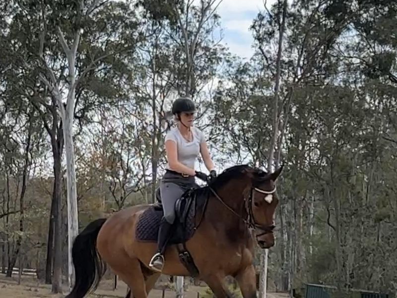 He is lovely to handle and a pleasure to float, shoe, clip, etc. B is easy to take off property to clinics / lessons, trail rides and the beach in company and on his own. He loves a variety within his work.
