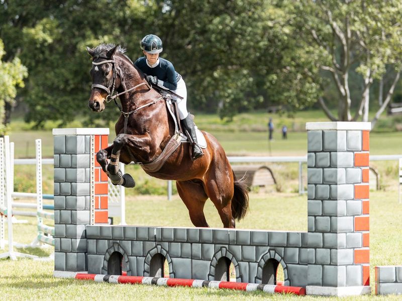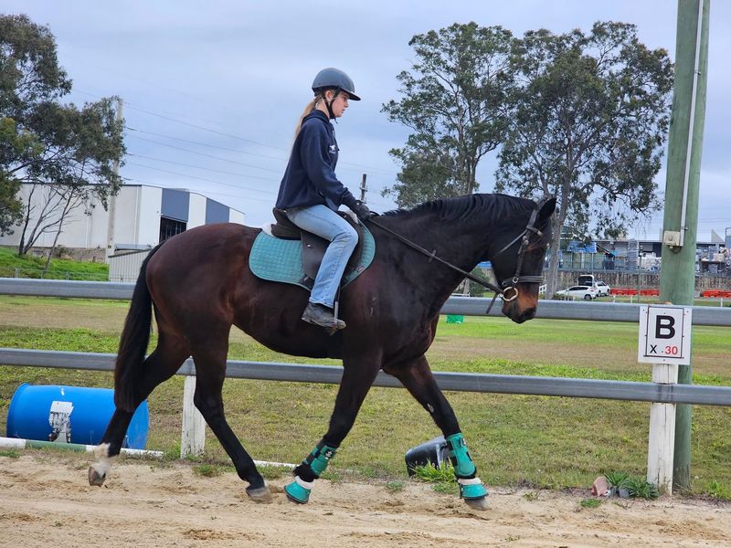 Currently doing low level jumping and eventing but much better suited to dressage/ showhorse or trail riding as gets a little too forward in the jump ring/ cross country. Very quiet out on trails/roads.