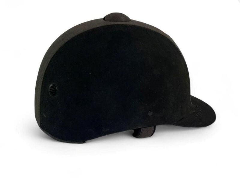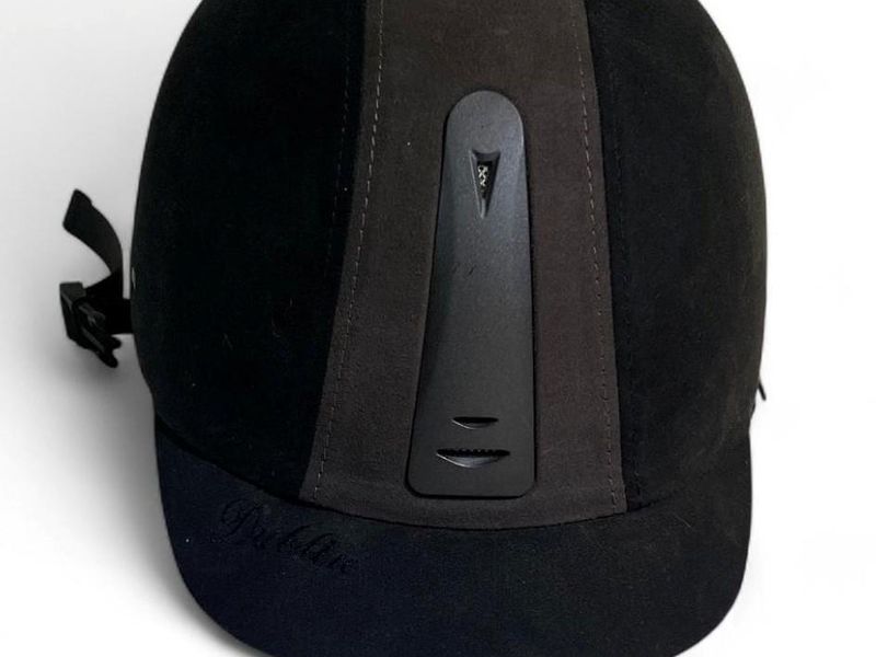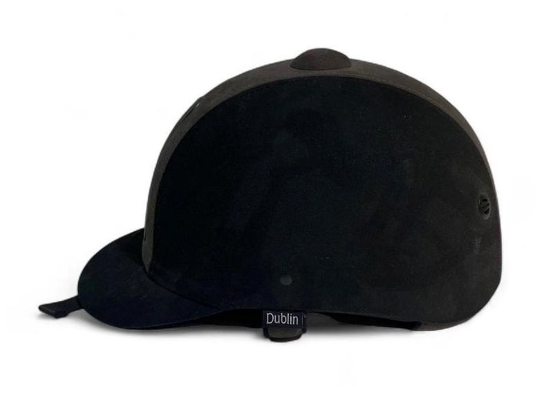 Dublin brand Junior Horesriding Helemt. As New. Helmet has beeen lovingly cared for and stored. The helmet has never been dropped/rider has never fallen with it on. Hasnt been worn in inclement weather. Measurements - Internal circunference - 58cm, Internal depth - 16cms, Internal width (chin starp to chin strap) 22cms. Black and brown suede exernal finish. Straps as new, no markings, damage, stains or signs of wear, internal padding as new.