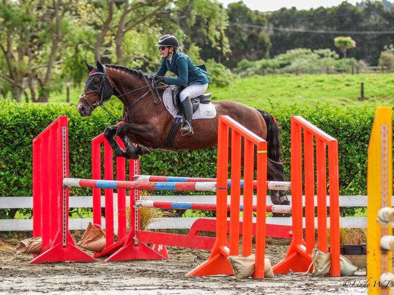 Burley is a gentleman to handle in all respects and take out to shows on his own or as part of a team. He does have some horse shy concerns in warm up rings which has improved with more outings. Burley was a licensed stallion (NZ Warmblood Association with DNA verification) with lovely progeny on the ground who all have his kind nature. He was gelded in January 2024 for ease of management as I have been at university. He has never served a mare and has no issues around in season mares.