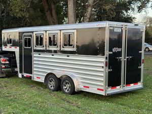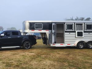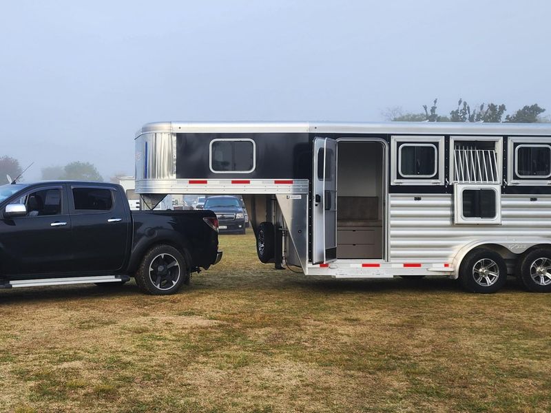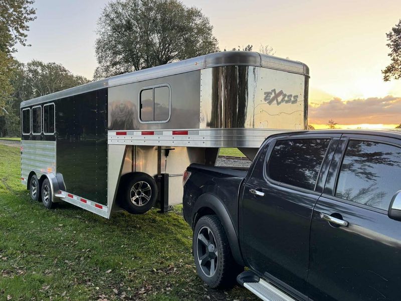 Dream America Trailers have available a 3 horse Exiss Gooseneck fitted with living that has been used as a show demo trailer. Never been used for horses.