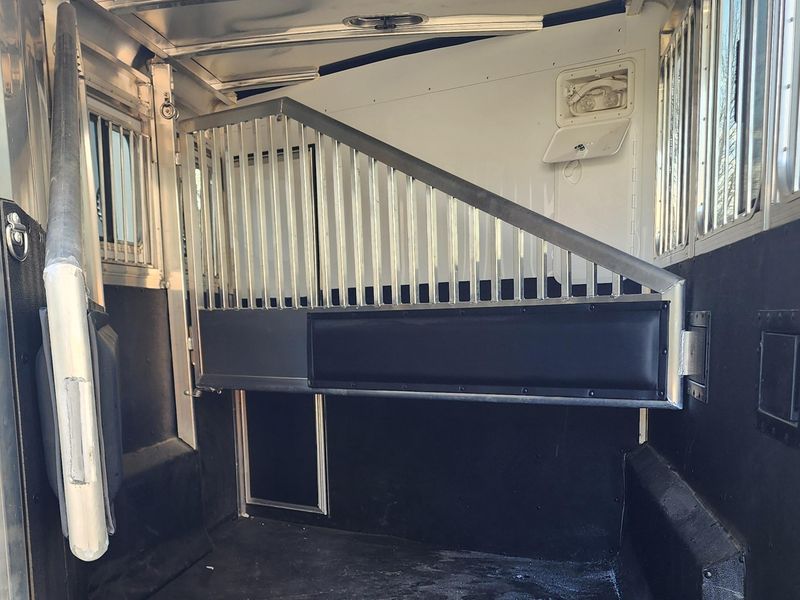 Usual top level features in the Gooseneck including quality engineered aluminum construction 4 wheel electric brakes with brake away brake, upgraded airflow dividers with Exiss's patented one hand close slam latch system, smooth ride torsion suspension, large rear tack with saddle racks to suit both English & western saddles, extruded sides where horse tie up to protect the outer of your trailer.