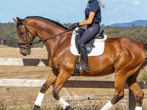 Perfect to tie to the float all day, stand for the farrier, load/travels well, loves a trail ride and is just so easy to have around. Waits at the gate for me, he’s just so keen to be around people and have a job.