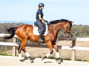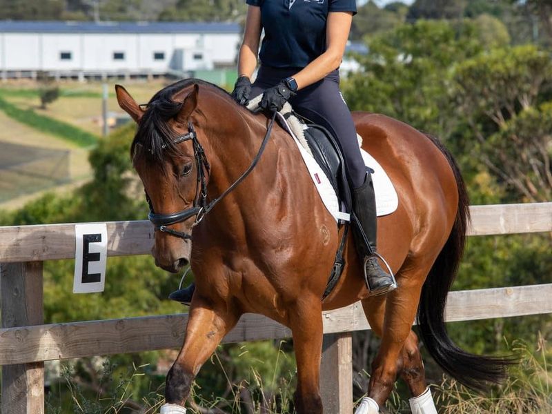 Under saddle Chey knows all the things, Moves forward off the leg and carries in a soft frame. He is light in the hands and very responsive to aids. Chey is a very capable jumper however requires a confident and capable rider in this discipline.