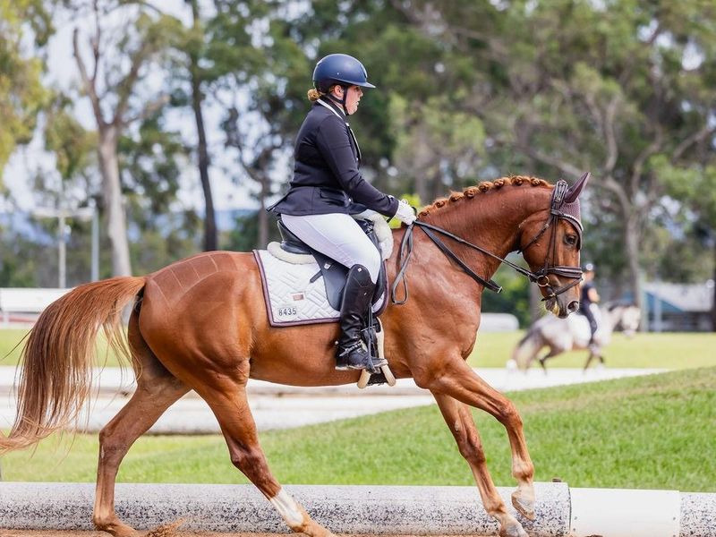Bertie has been well exposed to the competition scene, having successfully competed to Novice with official scores over 70% . He was confidently working Elementary before his break and training some of the medium movements including flying changes. He has had one start at Elementary going around confidently. Bertie is currently out of work due to lack of time and the recent weather but will easily come back into work and pick up where he left off. He is a quality young horse who will excel in the dressage arena and the potential for FEI with ease. With a great ability to ‘sit’ and an incredible work ethic, with the right person he will go all the way.