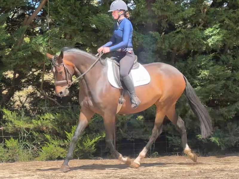 Under saddle she remains green and can be occasionally spooky, therefore not suitable for beginners, but ideal for a confident, educated rider seeking a quality horse with serious long-term performance potential.