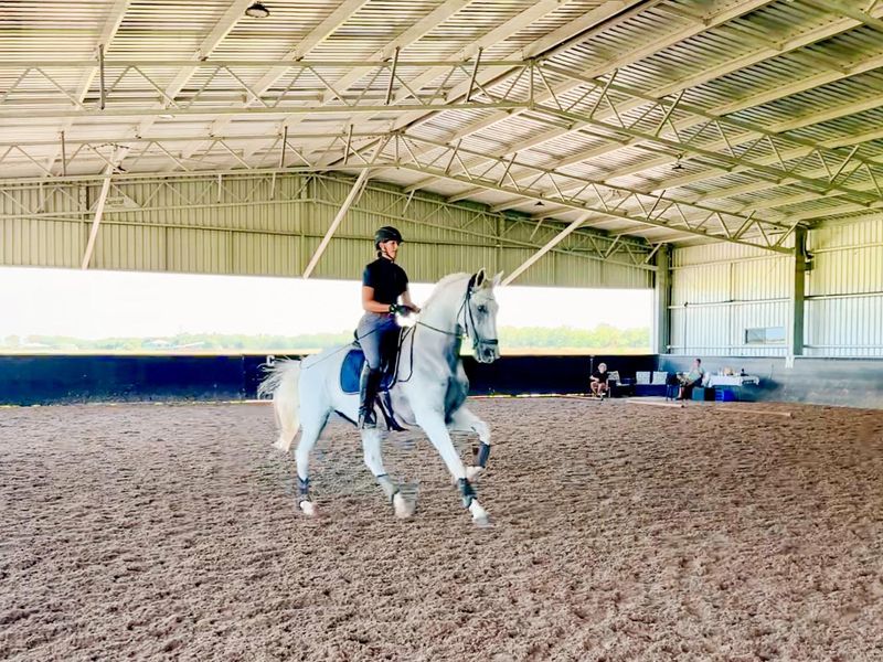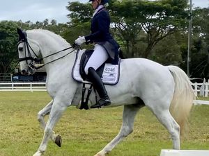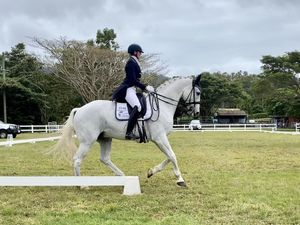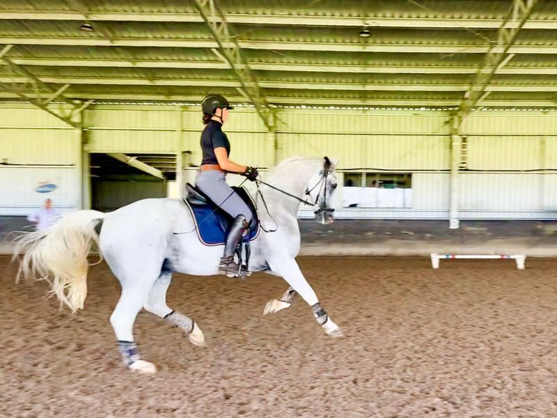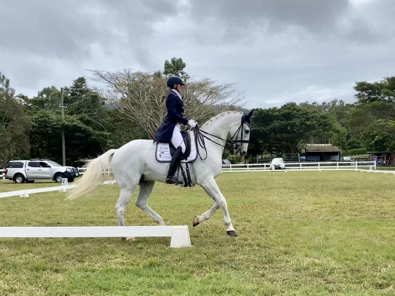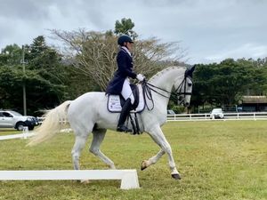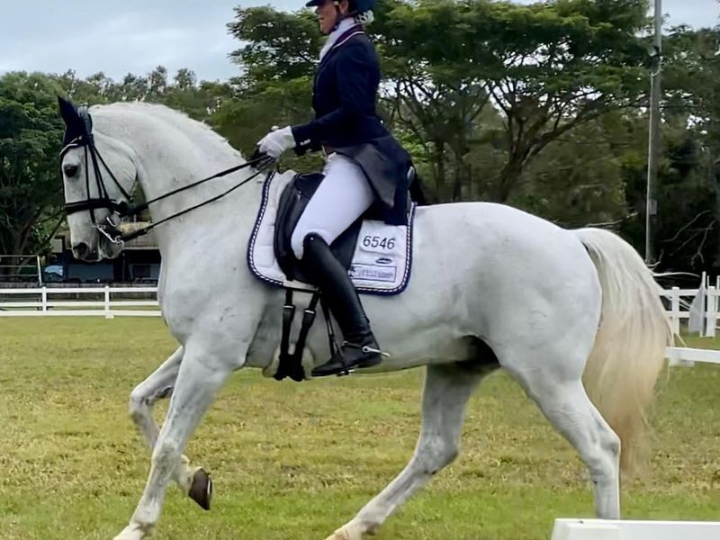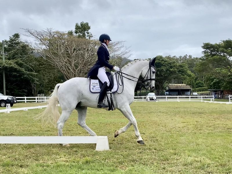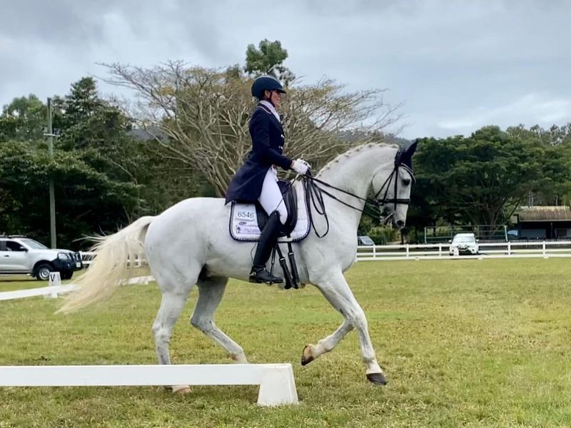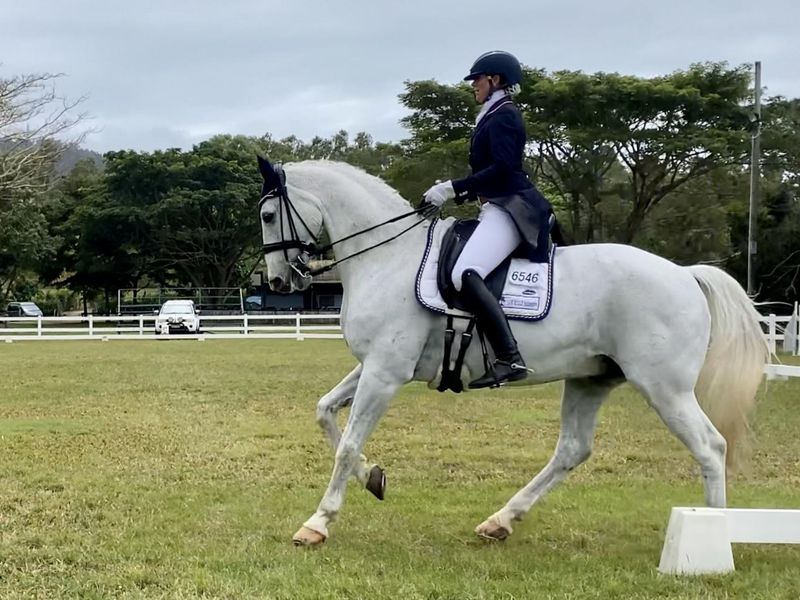 He has all the buttons and more to guide his new, young or adult amateur rider through the FEI levels. He has a lovely energy about him with a kind and gentle nature. Very established at Inter 1 work with piaffe and passage on the aid. He loves to jump, go outside, into the river and for a stroll around the property. He has also been ridden by a wide level of riders for them to gain experience over the years.