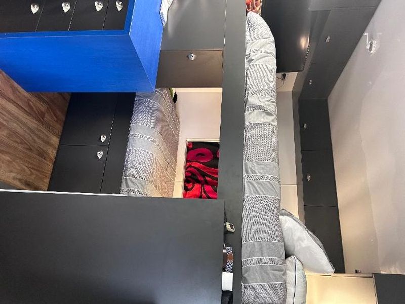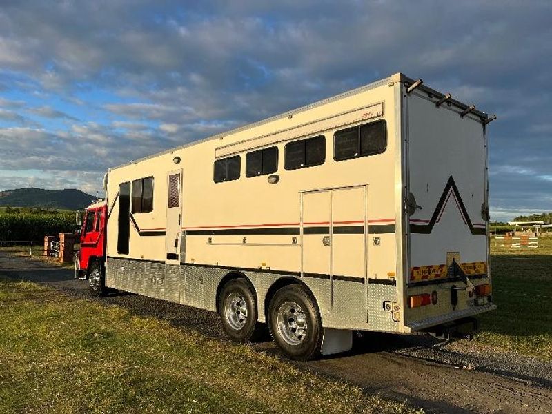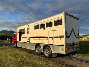 Sleeps 6 with a single bed, double bed, bunk in cab of truck and dining table that folds down into an additional double bed.
