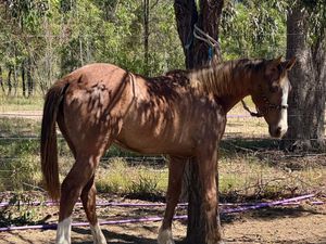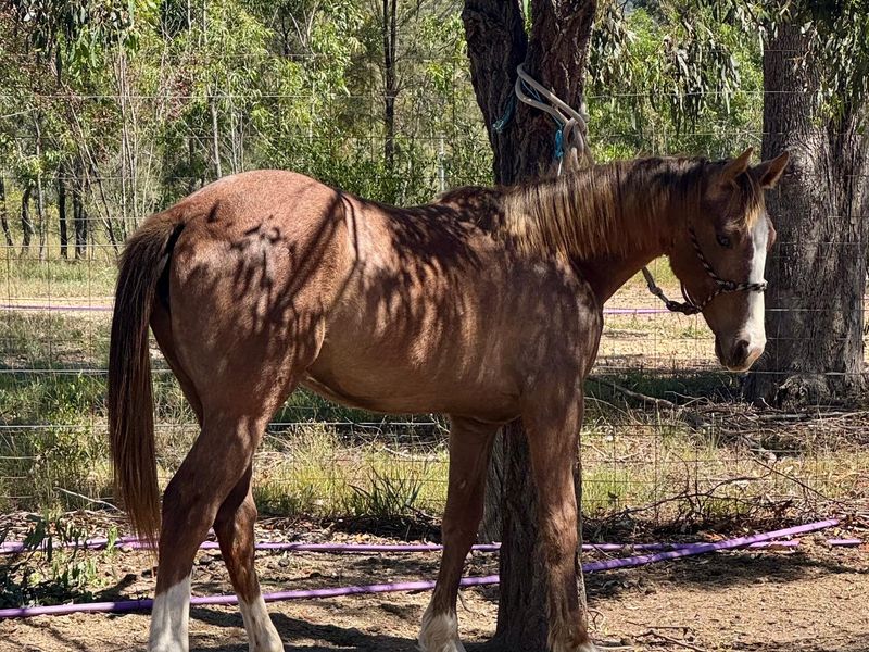 RegistrationsCherry is a stock horse/paint bred no registration, DOB September 2024, chestnut turning grey, good trainable personality. Easy to catch, trim feet every 6 weeks, loads on float, tie, rug has been put on and off her has not worn one in paddock. In paddock growing, good with other horses sense able for her age. regretful sale due to change in circumstances no fault to this gorgeous filly.