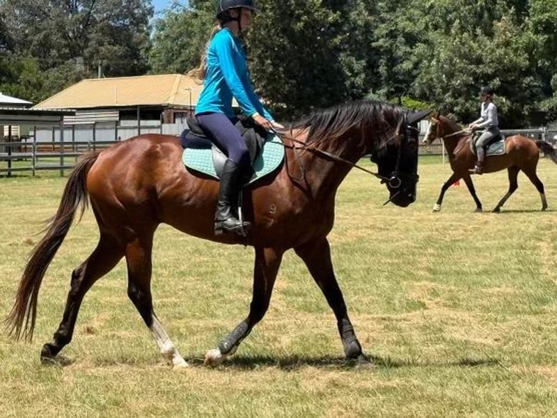 Since his retirement he has been ridden by a 15 year old and has shown huge potential as a dressage, show or jumping horse. He has attended fortnightly lessons with ea level 2 eventing coach, Pony club, jump club days and ag show.