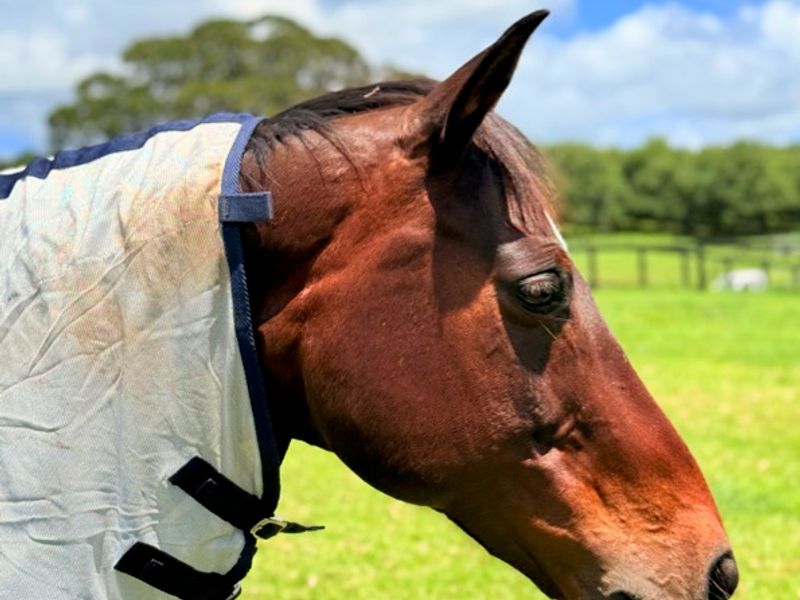 Happy in a paddock with shelter. Preference he goes to somewhere with a horse friend for him for his own mental health, although he is unfazed when alone in the paddock for period’s.