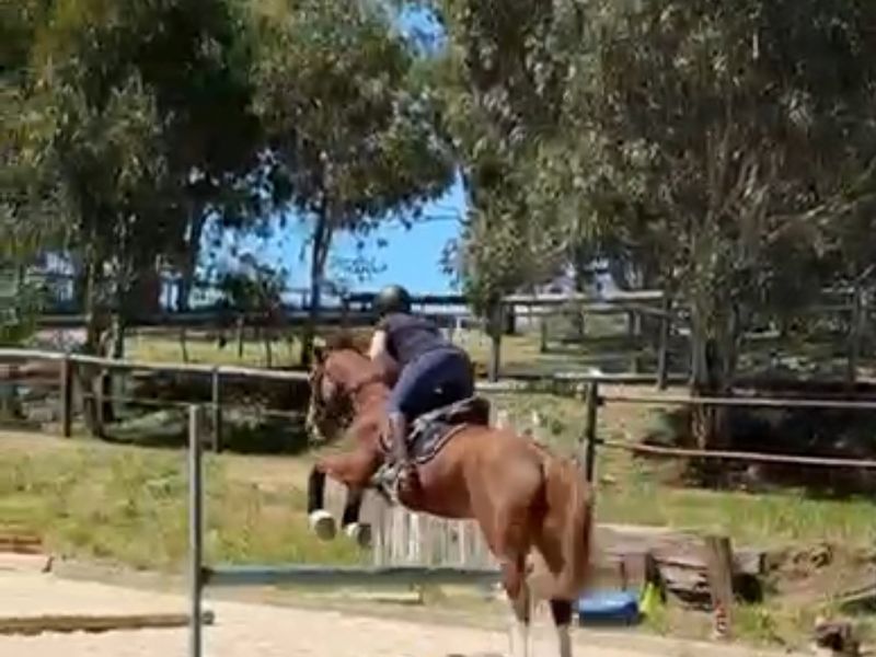 Finn has competed successfully from 80-100cm over the last two years and is training 105. He is honest and brave - he willingly jumps anything from planks to brick walls and water. Finn is tolerant of the occasional ‘miss’ and a rider who lacks the perfect eye for a distance. He has scope, is adjustable and responsive. When competing, Finn often placed at shows and events.