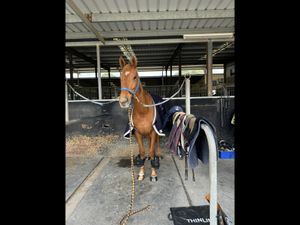 Quinny has plenty of show experience jumping up to 1.05. I believe Quinny has the potential to be a serious jumping prospect for someone with some more time and miles. He is very scopey and wants to be very careful. I competed him in the new star class at equimillion in 2024 and came 5th out of a field of about 60 horses - therefore is eligible to compete at Equimillion in any OTT class.