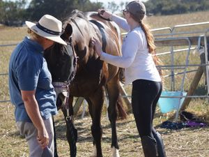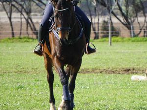 Romeo has been out to arena hires, Victor Harbor Riding Club, group lessons, xc hires, Adelaide Hills Dressage Club and the Port Elliot Ag Show, at all these outings Romeo tied to the float with other horses and alone for hours perfectly and was easy to walk around and handle. At home Romeo can be worked with other horses or on his own.