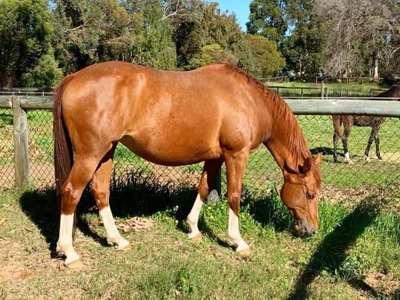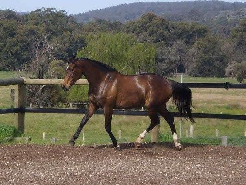 • Striking dark/liver chestnut coat with classic sock and star