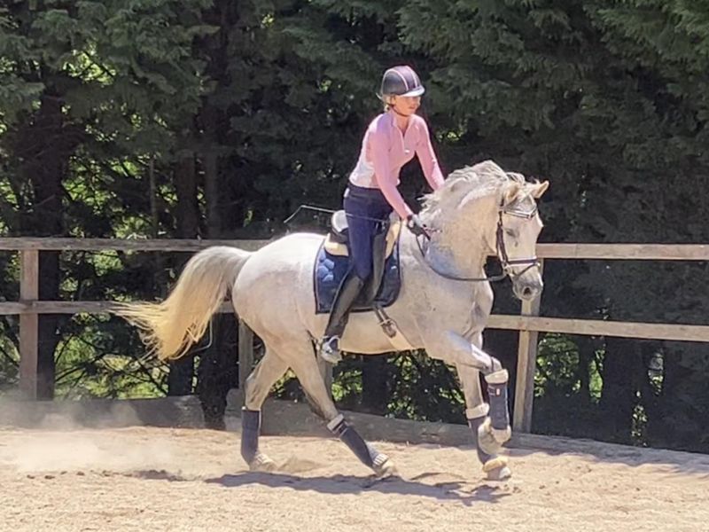 Max has jumped (1.05cm) and is currently training elementary level with great movement and a rocking canter. Max has exposure to competition life and is happy to stand at the float/truck all day.