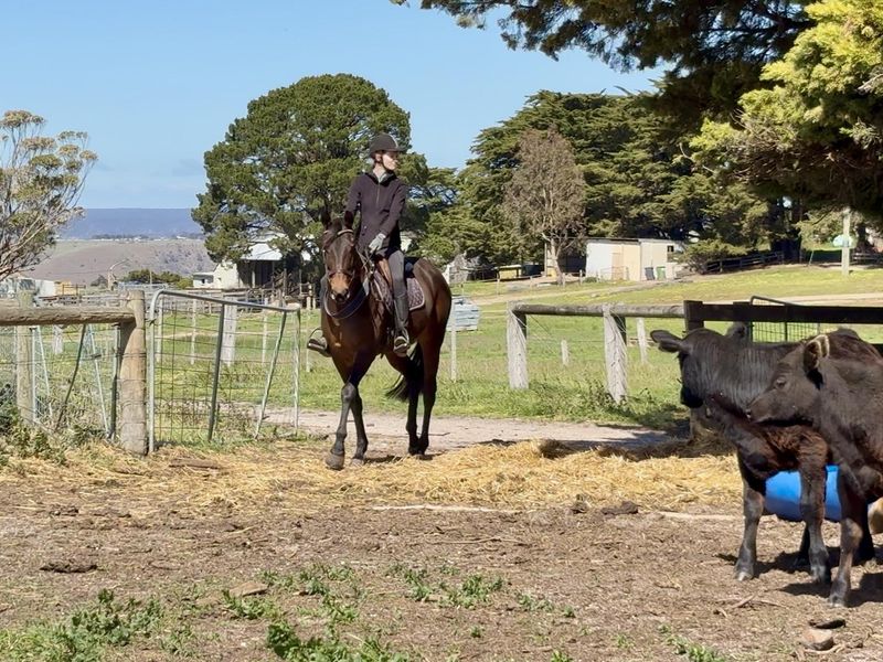 Great to hack out and has been out alone and with company. We have used her to move cattle, has gone out on her own with another motorbike.