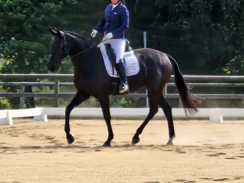 Evie has been competed at elementary. She is an extremely willing and easy mare to handle both at home and out and about. Evie would suit a dressage home and due to her excellent, level headed temperament she is suitable for amateur riders.