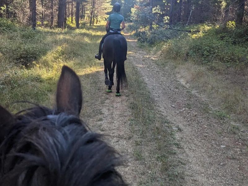 Squishy is the ideal partner to start your horse learning journey from entry level groundwork on up, responds to voice commands, very competent in basic ground work leg yields etc, has dabled in liberty and natural horsemanship activities, thrives on trail riding as she is very brave, forward and 100% safe with absolutely no nasty anywhere in her personality.