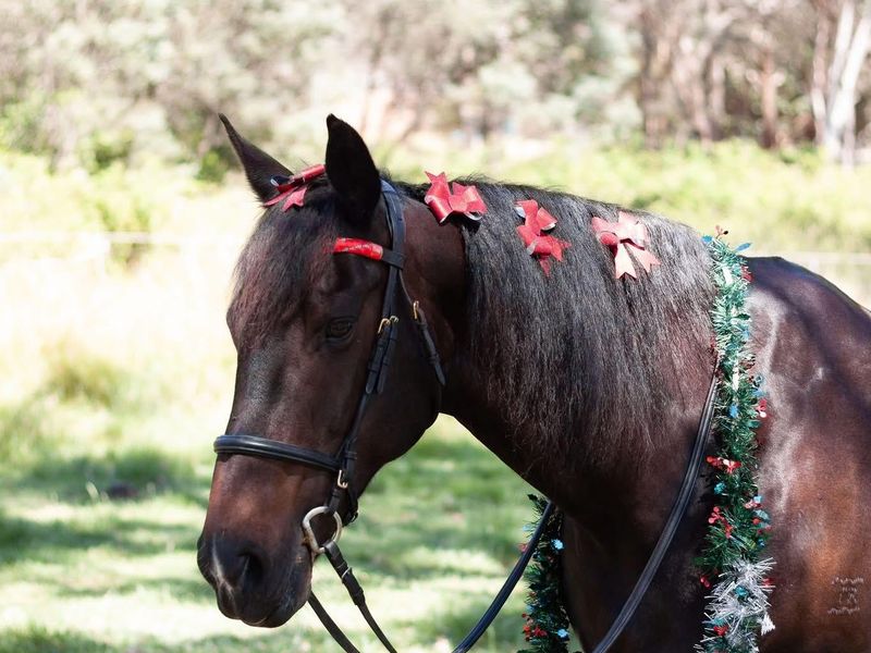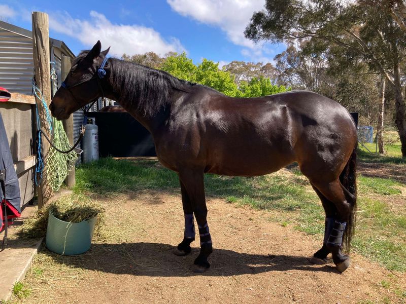 RegistrationsGorgeous 'in your pocket' Freisian x TB mare, Twin Rivers Mischka (17/11/2012). Head turner, heart stealer, bold, beautiful and competition exposed. "Squishy" is barefoot, super easy to handle, (bodywork, Vet, farrier, taking out to events, ties up happily while waiting between activities etc, floating etc) loves human attention and loves learning new things.
