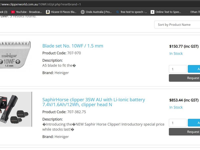 For Sale - Heiniger Saphir Horse Clippers - Rechargeable with two batteries. Also comes with 2 sets of 10WF blades.
