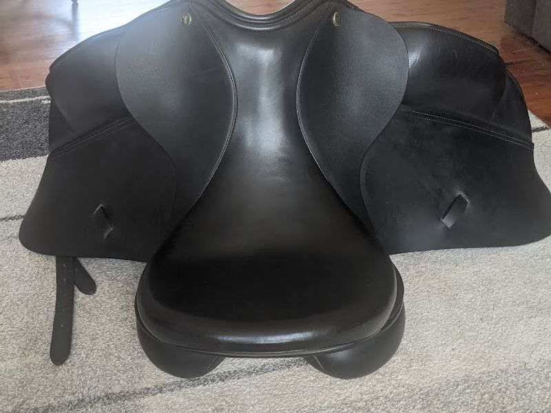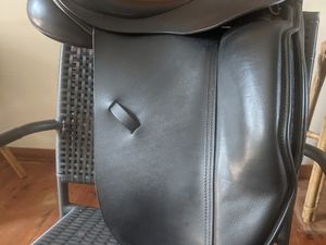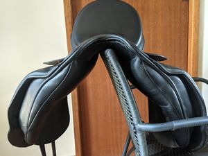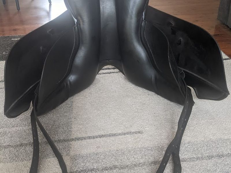 Ideal Suzannah Dressage saddle 17" XW. Made in England. Beautiful near new condition. No scratches or marks. Very comfortable. Wide channel and soft panels. Suits horses with broad backs and shoulders and allows great freedom of movement.