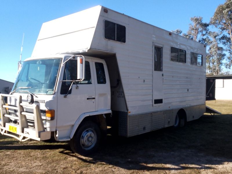 Price reduced!! Must be sold as taking up room in the shed, due to upgrade. Isuzu FSR 1989 model, registered until March 2026,MR licence, luton peak with crawl through, kitchenette with fridge and microwave, water tank, mechanically A1, interior excellent condition for age, all gauges work, tyres 90%, drives great on the highway at 100km/hr, 5 speed gearbox, exhaust brake works very well, bull bar, driving lights, no oil leaks, will take 3 large horses on the angle or 4 horses on the straight, new rubber flooring for horses, surveillance camera, chest boxes, rug rack, refurbished tailgate with hydraulic ram, rear privacy curtain and side curtains to protect side walls. Phone Cecil on 0419 405 726