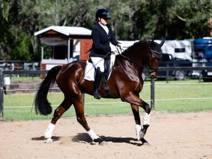 He is currently competing Preliminary/Novice with scores up to 68%, showing rhythm, balance and a good understanding of the basics. His natural swing and looseness make him a quality candidate for continued dressage development. At home Rodger is training all the elementary work - walk canter/canter walks, shoulder in, traverse etc.