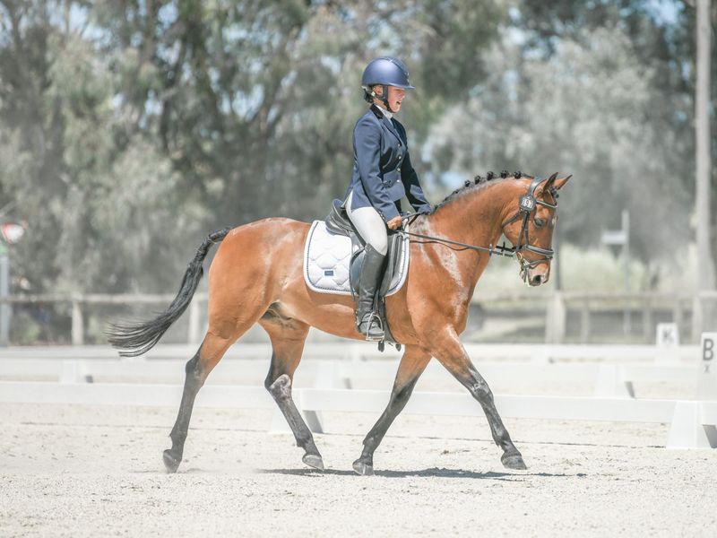 Dressage: Three flashy and correct paces on the flat and very capable, however he is a mixed bag of results in the arena, depending on the vibe of the day. He likes soft, settled hands and clear aids and to be ridden forward.