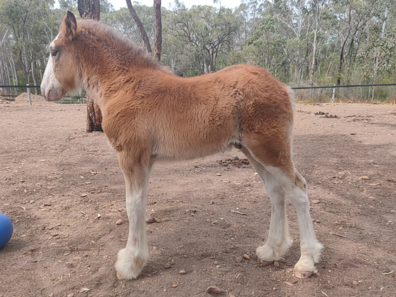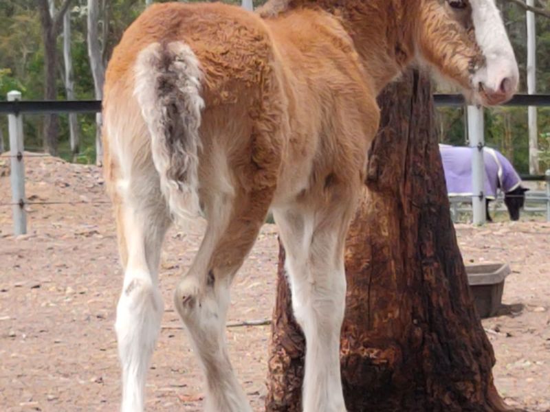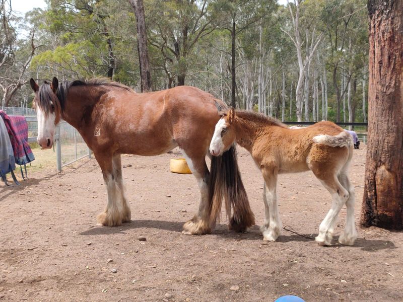 A purebred Clydesdale colt, born 18/09/25. He will be registered with the CCHSA, up to date with worming, vaccination, and branded. He will be ready once weaned in February/March 2025.