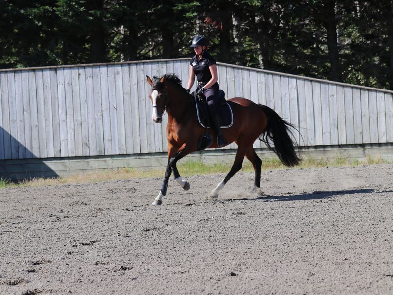 Kit Kat is beautiful on the flat with 3 great paces and the most amazing canter! She is uncomplicated to ride with a sensible personality and trainable brain, making her a great prospect for an ambitious young rider wanting a quality horse to build a partnership with and bring up through the grades.
