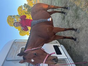 Bay TB mare for sale. 15.1hh 12yrs old. Easy to wash, lunge, float, shoe and ridden in snaffle bit. Has attended pony club, riding lessons and jump training day. Was jumping 80cm at Ag shows when competing at previous home-potential to go higher. We purchased Gabby for our 10yr old daughter however we feel she would be better suited to a confident, amateur or experienced rider to get the best out of her. Been in full work the past 6 weeks. This is a sad sale for us and finding a suitable home for Gabby is most important. $8000 neg includes bridle and rugs.