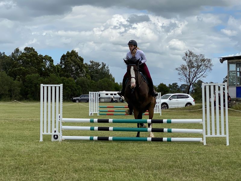 Educated to medium dressage, he offers established lateral work, beautiful rhythm, and a willing, soft way of going. He has also happily popped around small jump courses up to 80cm, always giving 100% with his signature calm attitude.