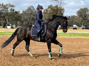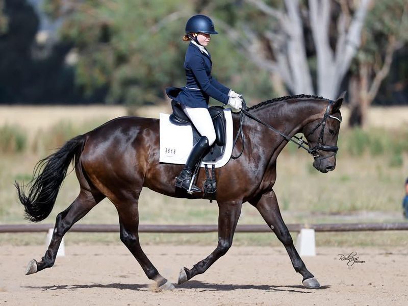 He is a bargain horse at this price, BUT, and I cannot emphasis this enough, he is not going to suit anyone with any hesitation as he can, and will take advantage. He has unsettled his current rider bucking her off and rearing when fresh. Being 25% thoroughbred, Thomas can jump and I think would have the capacity to go a long way eventing, he also has an incredible amount of movement and has half pass and a change established each way.