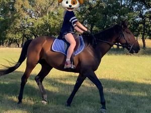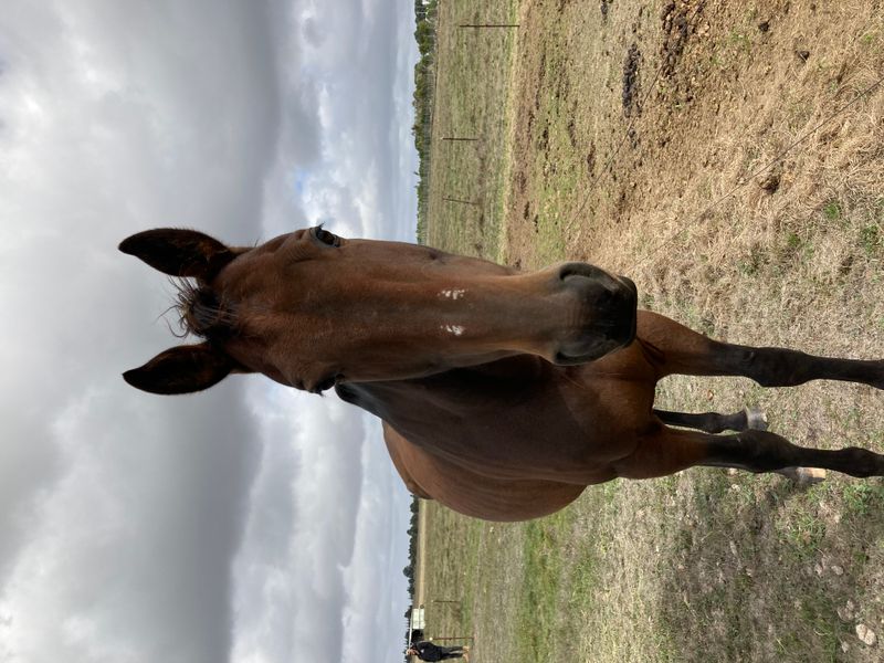 Mickey is a roughly 16.2-16.3 (unmeasured), 8 year old Standardbred gelding who has the biggest, goofiest heart. Mickey loves his person, calling out and coming to the fence to greet you. He has the best, silliest personality you could ever imagine. He loves basically all food, treats and affection.