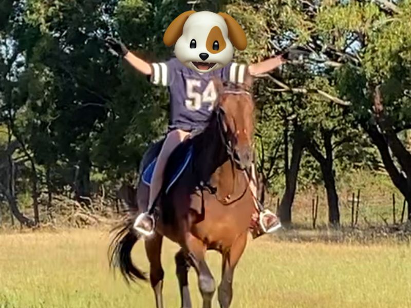 Mickey is WAY more woah than go but on trail rides he is a little forward, though nothing bad. Mickey can pigroot into canter but will still try his best. He much prefers to walk and trot rather than canter.