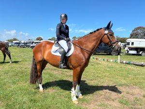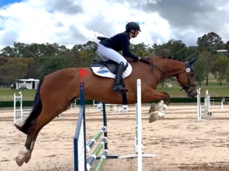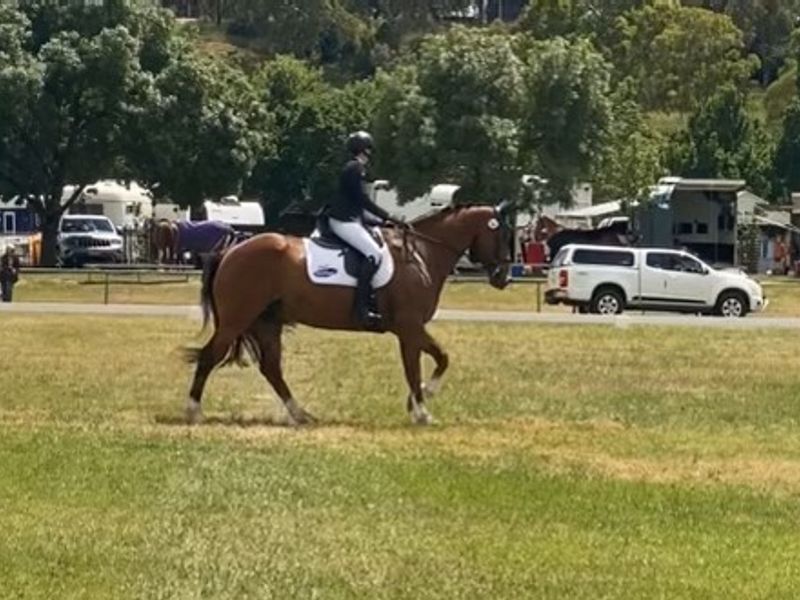 DisciplinesOffered on behalf of owner. Zues is a 13 year old 16.3HH Welsh Cob x Thoroughbred gelding. He is a true all-rounder and would excel in an eventing/interschool/SJ home. He is a solid boy with good confirmation and nice correct paces. Zues is a straight forward and willing on the flat with a soft snaffle mouth. His lovely rocking horse canter is a standout. He does not ride like a big horse with big movement which makes him very comfortable to ride. He is bold XC, always careful in show jumping and a very genuine ride across all phases. He has done 2* with his previous owner but has most recently been used for low level/pleasure riding. He has been brought back into full work to be sold, and recently competed for a 6th place in EVA95 at Albury, 5th place in EVA95 at Avenel, and with a junior rider he won the Open Grade 2 at Mentone Horse Trials.