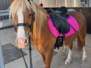 Roger loves his humans and will give his heart and soul. Always makes people smile and giggle with cheekiness. He tries to always keep his rider safe but is not a beginners pony for a beginner horsey family but he could be for a beginner WITH an experienced horsey home with an older child or adult to also ride him, he has a little too much cheeky personality. Would be a great second pony in a horsey home or a great add on for someone wanting to give everything a go.