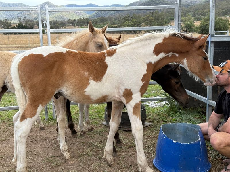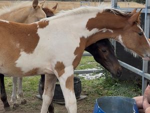 DisciplinesPaint x Clydesdale weanling Colt Basic handling mature around 16hh.