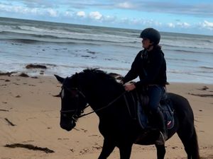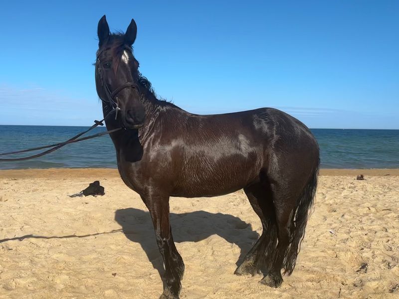 She’s attended dressage and jumping shows with success and been to the beach, trail riding and takes everything in her stride. She has no vices, and doesn't get separation anxiety.