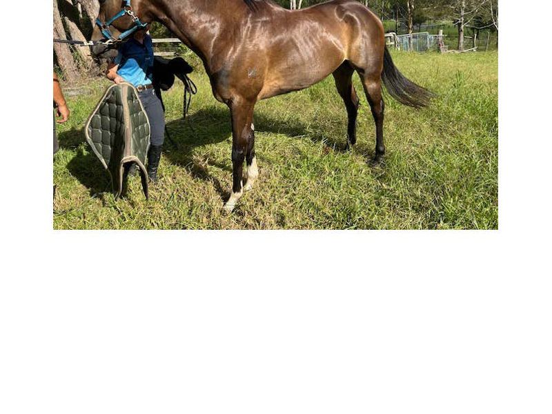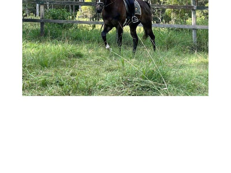 We have owned Rex for 12mths. Originally purchased as our potential show jumping horse, Rex had a good solid foundation through a TB Retraining program. He has 3 soft natual paces, and had begun education on flying changes and walk - canter transitions.
