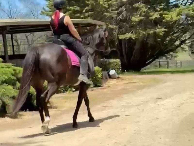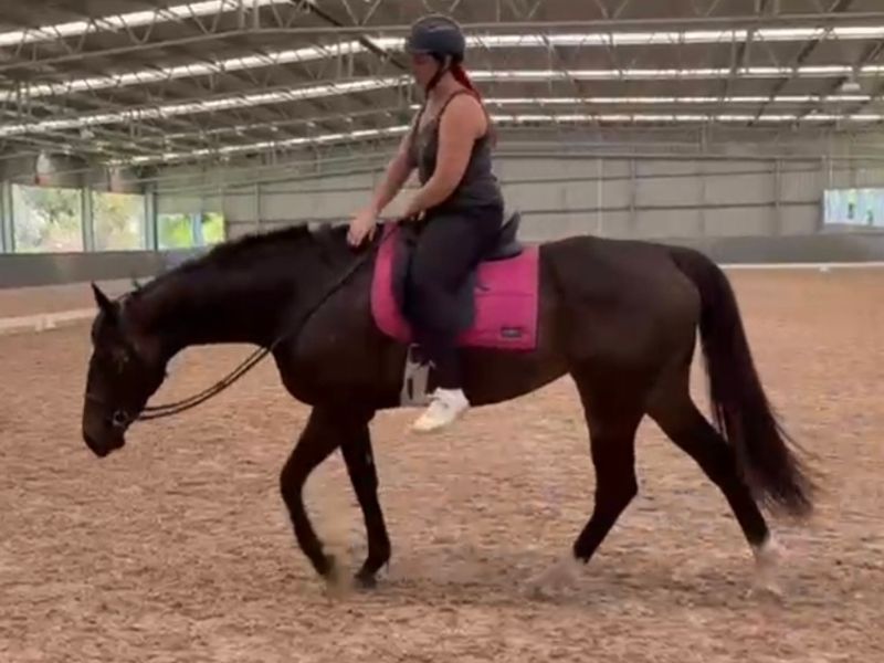 Swiss is an incredible mare who got sacked from her racing career before it even started 😂 more woah than go, has had a solid foundation created with myself and is now ready for a new home. She has an incredible nature and is very loved by all who meet her. Sweet personality who is interested in people and wants to have a chat. She needs someone to continue her education and build her confidence but she is a very straight forward horse and would be perfect for someone looking to get their first young/green horse because she is so genuinely lovely.