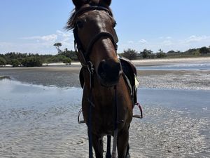 Wally is a quiet, kind-natured horse who has no spook, buck, or rear. He is more 'woah' than 'go'. He would suit a rider with basic knowledge and riding ability who wants a safe horse to have fun on. I have done everything on him from beach rides, bareback in a halter, road riding, and night riding. He is patient, sensible and easy going.