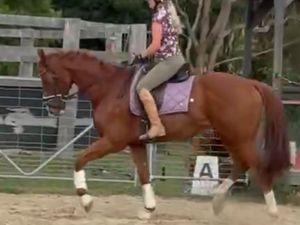 He has had a few jumping sessions, trot poles, cross country training days, but his real forte seems to be dressage. He is going beautifully with lovely leg yeild, shoulder in, walk pirros. His canter work is coming along, not quite as balanced as trot work yet, as expected with time he will be a super star.