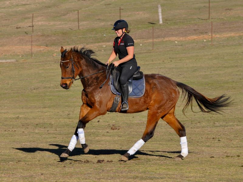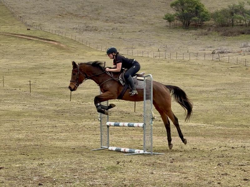 Warnie has a beautiful soft snaffle mouth in all disciplines. On the flat Warnie has natural uphill elastic paces. He moves beautifully off the leg and tries his absolute best every ride and continues to improve everyday. He has beautiful self carriage making him a simple ride. In the showjumping Warnie is scopey but sometimes he does just jump high enough that he doesn’t have to bend his legs too much however he’s getting better with this. Warnie has cross country schooled and has proven to be incredibly bold and enjoy his time out on course.