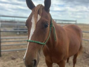 Ground manners are exceptional for a young horse, walks when you walk, stops when you stop, picks up his feet in anticipation when you touch his leg. Foundations for the perfect riding partner are there. With more work he will be suited to any discipline.