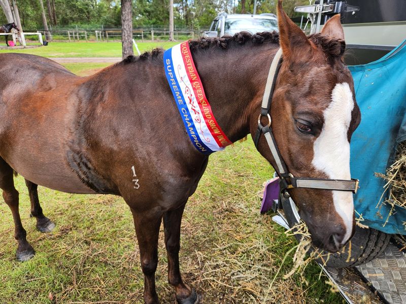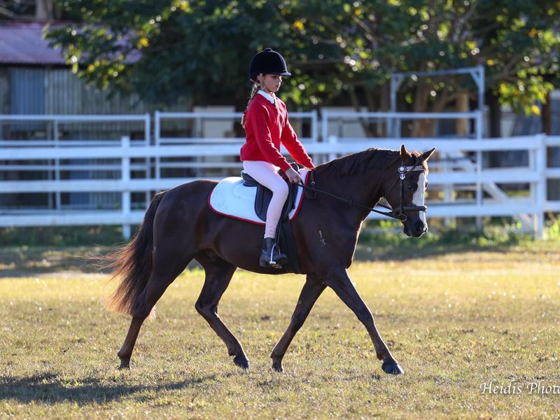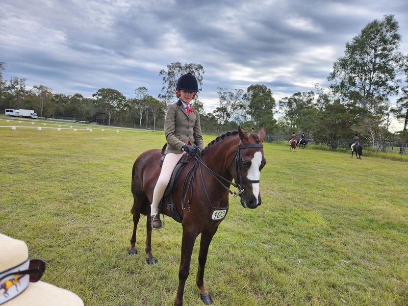 Because of the wet weather, selling our property and our daughter growing too tall, Charlie has had limited outings over the past 2 years. Despite this and with no preparation, we took him to the SE QLD Interschool dressage championships in May 2025 and he easily placed 6th out of over 30 riders. He has the potential to go all the way in Pony Dressage for an ambitious rider/family.