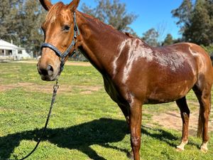 She is a pleasure to have around, easy to handle, and loves heading out on the trail. She is currently in paddock condition and holds her weight exceptionally well — even in very dry conditions she is looking fantastic and sparkling, unlike many Thoroughbreds.