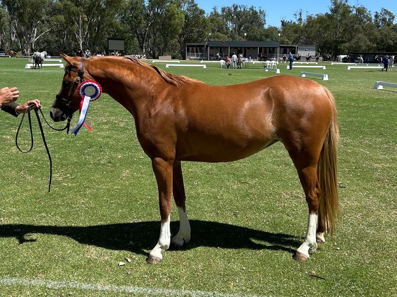 Red is one of the sweetest ponies I have had to deal with. She will make a great kids pony or leading rein pony for someone once broken in. Was shown as a 2 year old at 2 shows where where achieved Champion Welsh Pony, 1st 2-3yo Welsh Filly (Rochester Ag Show 2024) and 4th (Welsh Nationals 2024).