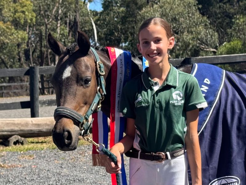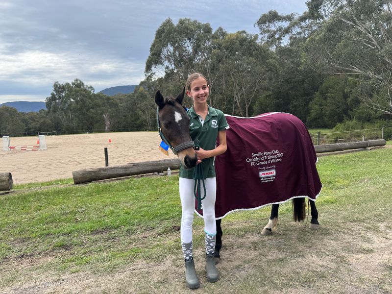 Trixie has been part of our family for just over four years and has taken my daughter from Grade 5 Pony Club through to confidently competing Grade 3/Novice dressage. Together they have qualified for Pony Club State Championships at Grade 4 dressage and placed first at multiple Grade 4 dressage and combined training competitions. Trixie is currently competing Grade 3/Novice dressage, E-grade show jumping, Grade 4 eventing, and Grade 4 combined training. She is jump training up to 85cm and has the scope and potential to move up the grades with the right rider.